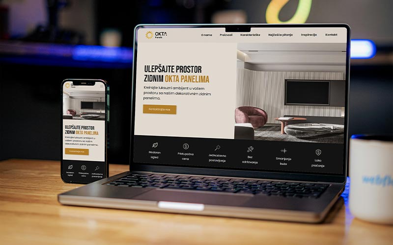 OKTA Panels je web prezentacija brenda i ponude dekorativnih zidnih i plafonskih panela koji služe za uređenje enterijera i stvaranje estetski lepih i funkcionalnih prostora. Na sajtu su prikazani različiti tipovi panela (drvo, kamen, koža, metal, ogledalo, mermer), njihove karakteristike, dimenzije i cena po kvadratnom metru, uz kontakt informacije i mogućnost slanja upita za narudžbinu.